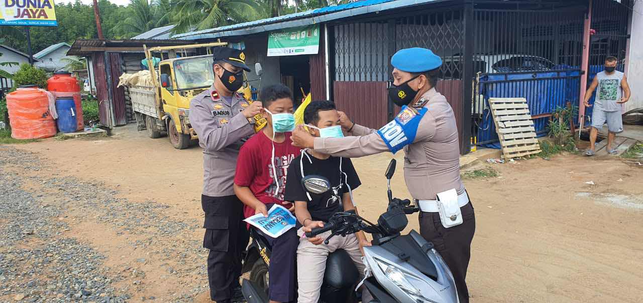 Pembagian Masker , Upaya Polsek Muara Pawan Dalam Menekan Penyebaran Covid 19